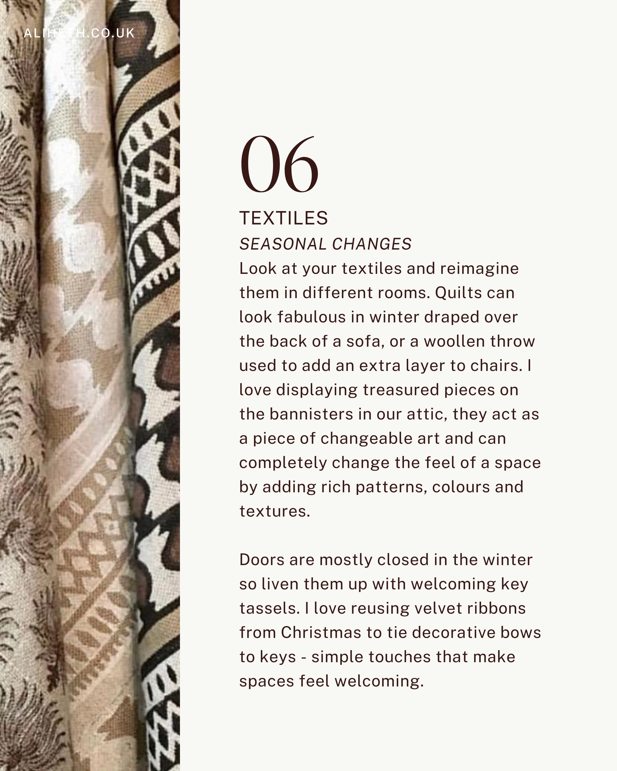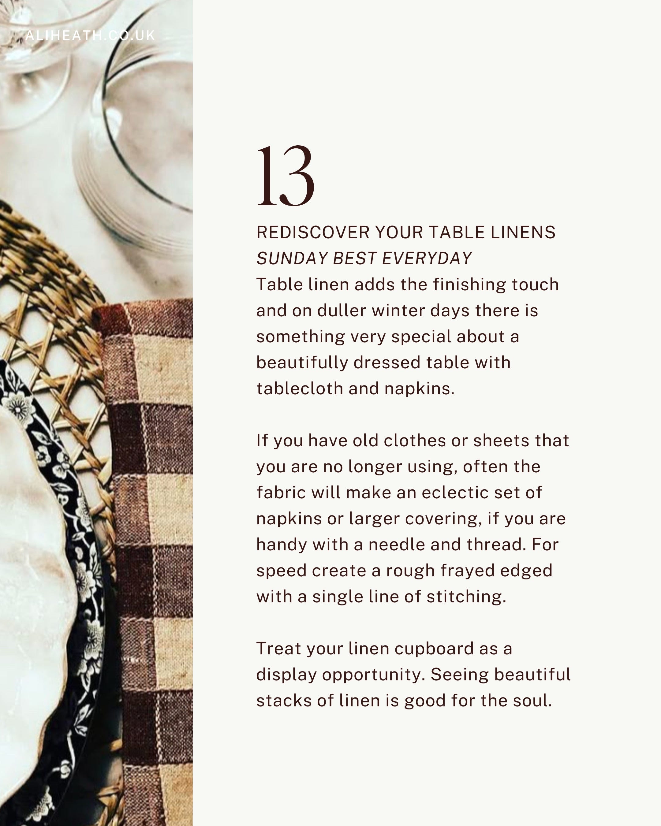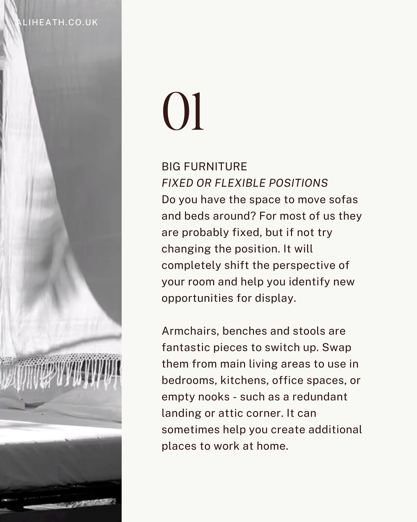 Wonderful, thank you Ali for the inspiring ideas. I often find re-positioning furnishings energises me to do bigger projects which I've been stalling on too.