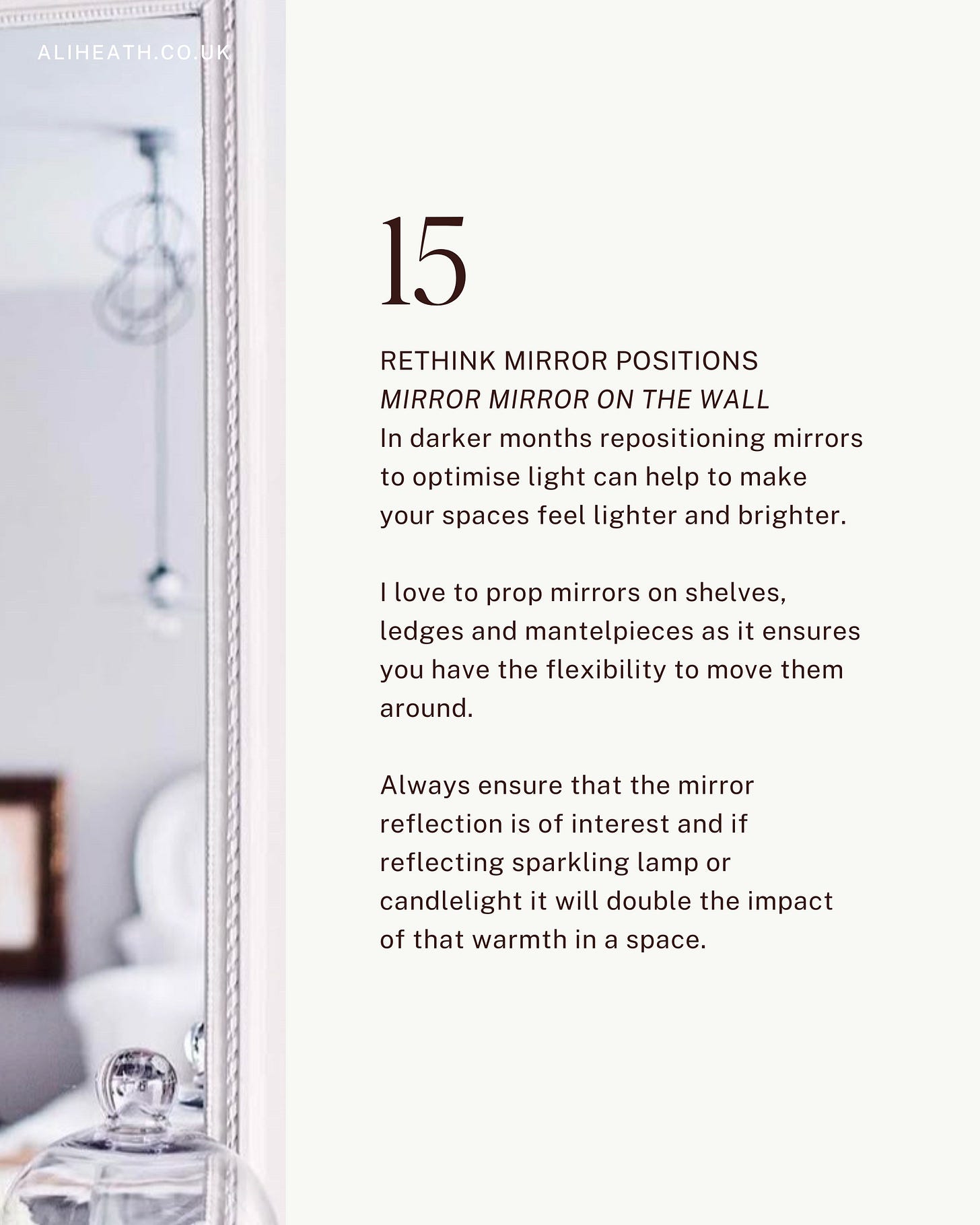 So let’s jump in - these are my top 15 tips for re-energising your spaces, when and if you get the time this month.